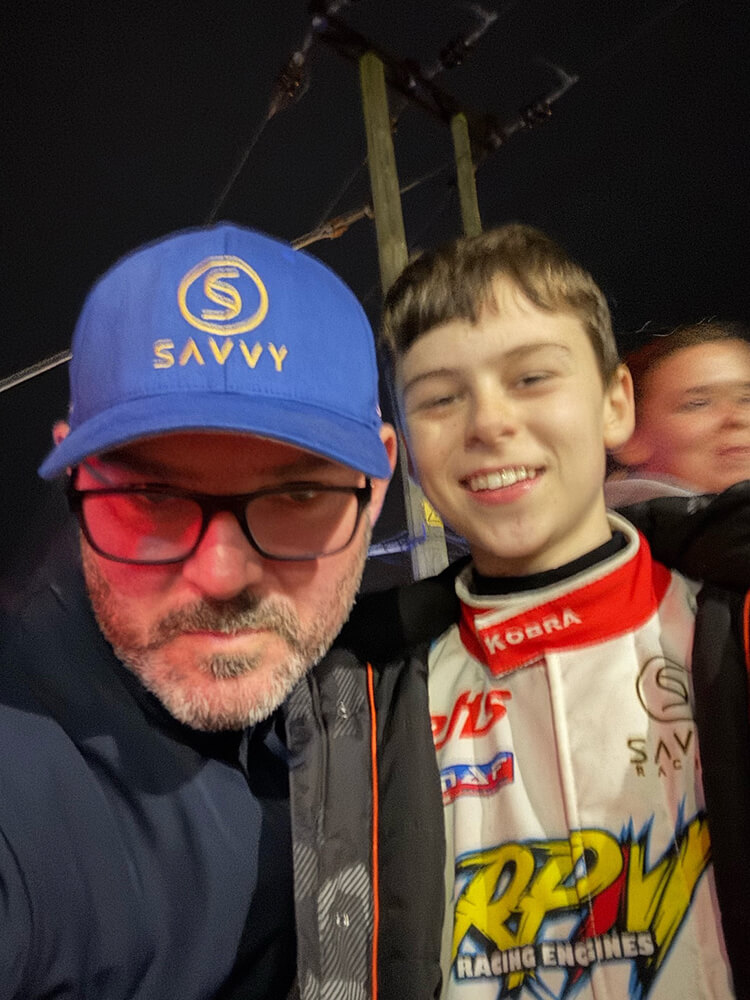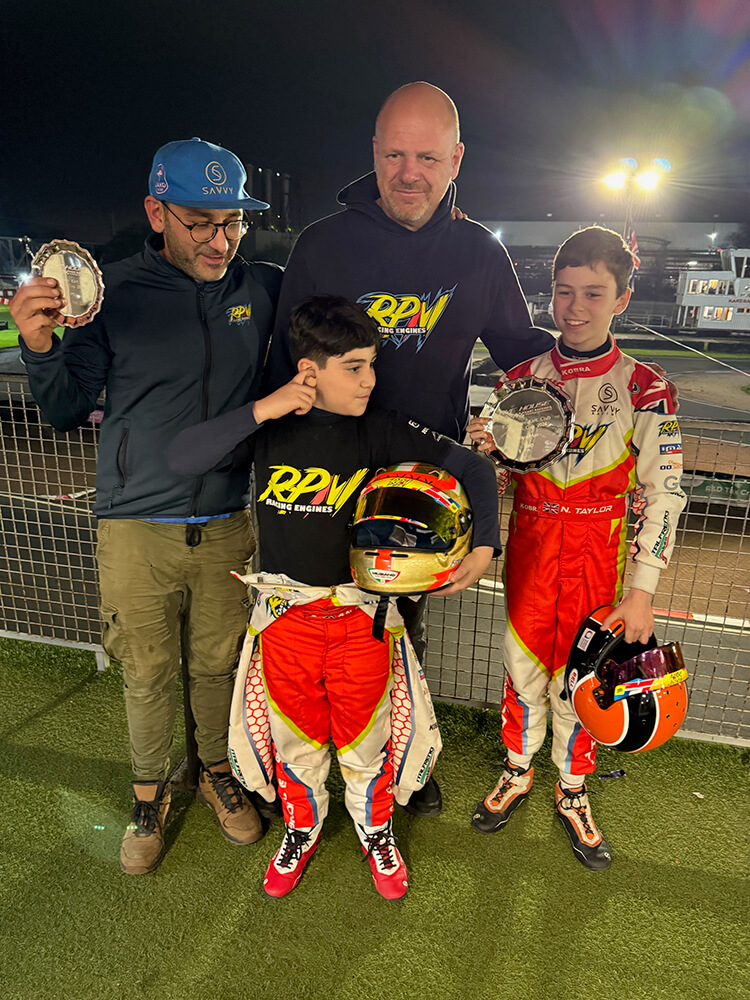 Nelson won’t give an inch, lap after lap. Finally, consistency pays off. On the last lap – just with a couple of corners to go – Nelson finds the space to edge out Livings, squeezing cleanly into 4th and stays there to the chequered flag. And the good news doesn’t stop. Ben Lorne, in third, gets a penalty, giving Nelson a leg-up to the podium. We’re well pleased: first time out at Rye House and we get third. And that’s for a rookie who’s never seen the track before. Rye House tops Nelson’s weekend off with the accolade: ‘Driver of the Day’. Nelson’s phone rings: is it Mum or Sir Lewis with the congrats ? We can but dream. The race continues.